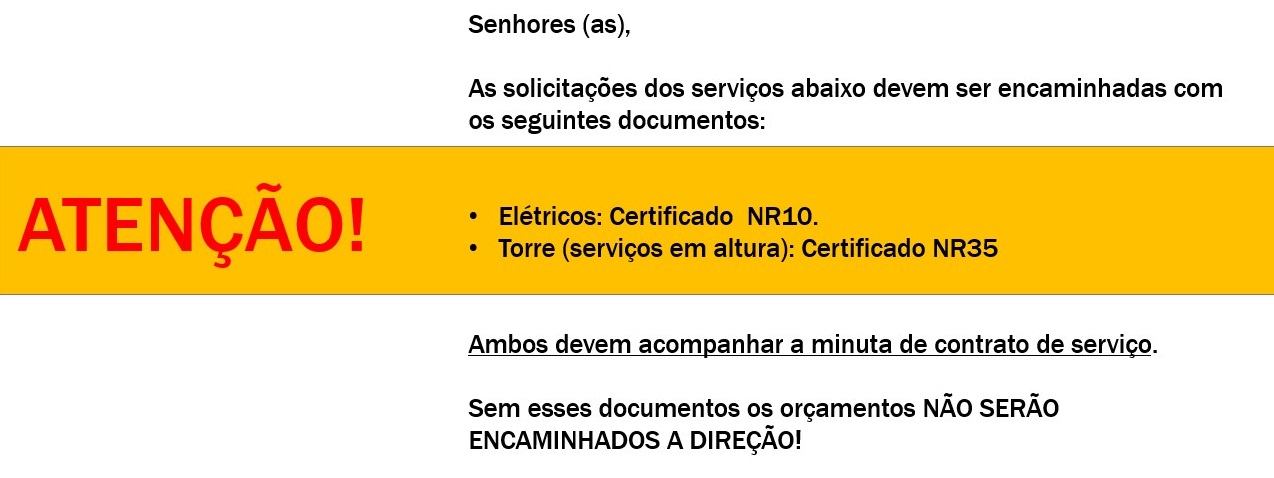 Antes de solicitar compra de equipamentos ou componentes observe as seguintes orientações: